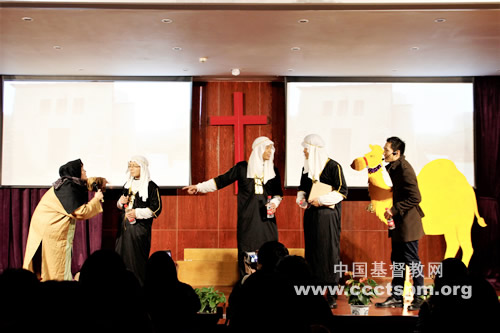 之后,同学们为纪念耶稣基督降生准备的名为《寻》的圣剧拉开帷幕。这部圣剧藉着博士寻星的圣经故事,讲述了上帝对痛失亲人的舅甥俩奇妙的带领和拯救。同学们表演投入,使得观众泪中有笑,回想上帝对自己的拯救,都纷纷感恩。