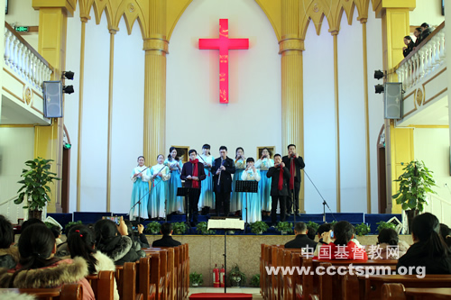 2017年12月25日上午,以“惊天动地主降生”为题,该校教务长助理靳新元牧师宣讲圣道,随后学生会组织的信徒自报节目有序表演,大家载歌载舞,恭贺圣诞。