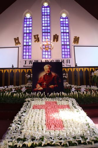 2012年12月8日下午1时30分,来自海内外的基督徒一千多人相聚在江苏南京莫愁路基督教堂参加丁光训主教追思礼拜,共同缅怀敬爱的丁主教。