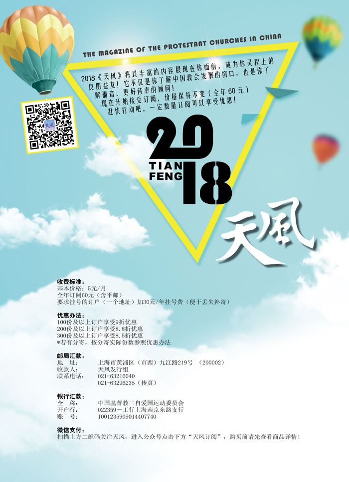 2018年《天风》开始征订,您也可以选择微信支付噢!