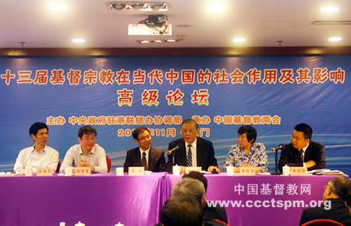 由中央人民政府驻港联络办协调部主办、中国基督教两会承办的第13届“基督宗教在当代中国的社会作用及其影响高级论坛”,于2017年11月14日在福建省厦门市召开,47位来自香港和内地的嘉宾参加本次论坛。中央人民政府驻港联络办协调部副部长张强、中国基督教三自爱国运动委员会主席傅先伟长老、福建省委统战部副部长翁雄宇、国家宗教事务局研究中心副主任雷丽华、中共中央统战部二局基督教处处长倪智泉出席开幕式,中国基督教协会驻会副会长单渭祥牧师主持开幕式。
