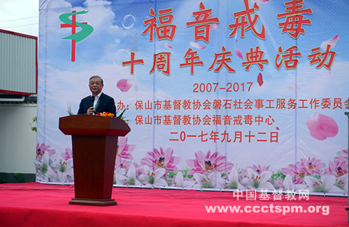 在庆典活动上,傅先伟长老对戒毒中心的搬迁落成暨十周年庆典表示了祝贺,对支持和帮助保山教会建设和开展社会公益慈善活动的党政领导及社会各界爱心人士表示了感谢。傅长老在讲话中指出,基督教全国两会、各地基督教两会及教会的弟兄姊妹以实际行动响应党和政府关于“发挥宗教界人士和信教群众在促进经济社会发展中的积极作用”的号召,积极投身社会服务,在众多社会服务领域都取得了显著的成绩。“帮助一位吸毒者,就是帮助一个家庭;参与支持戒毒事业,就是减轻国家、社会的负担”。保山福音自愿戒毒中心的实践充分体现了基督教“以人为本、全人关怀”的服务理念,是我们实践基督教信仰的重要方式,是弘扬基督教道德的具体表现,也是教会事工的重要组成部分。希望戒毒中心能够不断完善自身的能力,让吸毒者从中受益、重返社会。