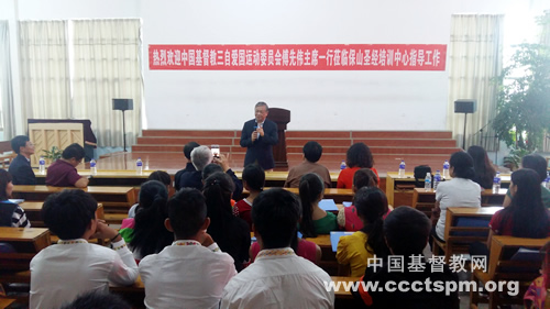 9月11日下午5时许,在学生们热情的掌声和动听的歌声中,傅先伟长老一行顺利抵达云南省保山市圣经培训中心。来自16个民族的培训中心的学生向来访的客人献唱了诗歌。在听取了培训中心的情况介绍以后,傅先伟长老充分肯定了中心在进行圣经教育的同时加强民族间互相沟通的办学思路和在多民族学生中采用普通话教学的方法,鼓励中心的学生在学术上有更大的增长,在信仰上更加的虔诚,在社会上活出更加美好的见证,成为建设国家的正能量。