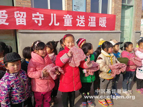 一年一度的寒冬时日已然进入人们的生活,为进一步关爱留守儿童生活所需,甘肃省基督教两会联合爱德基金会、香港爱基金做好留守儿童事工的后续工作,分别于2017年11月底和12月2日在平凉、天水部分地区为留守儿童举行送温暖爱心活动,发放毛衣、帽子、围巾共1000多件套,领上防寒衣帽围巾的留守儿童在家人的陪同下兴高采烈,喜乐充盈。